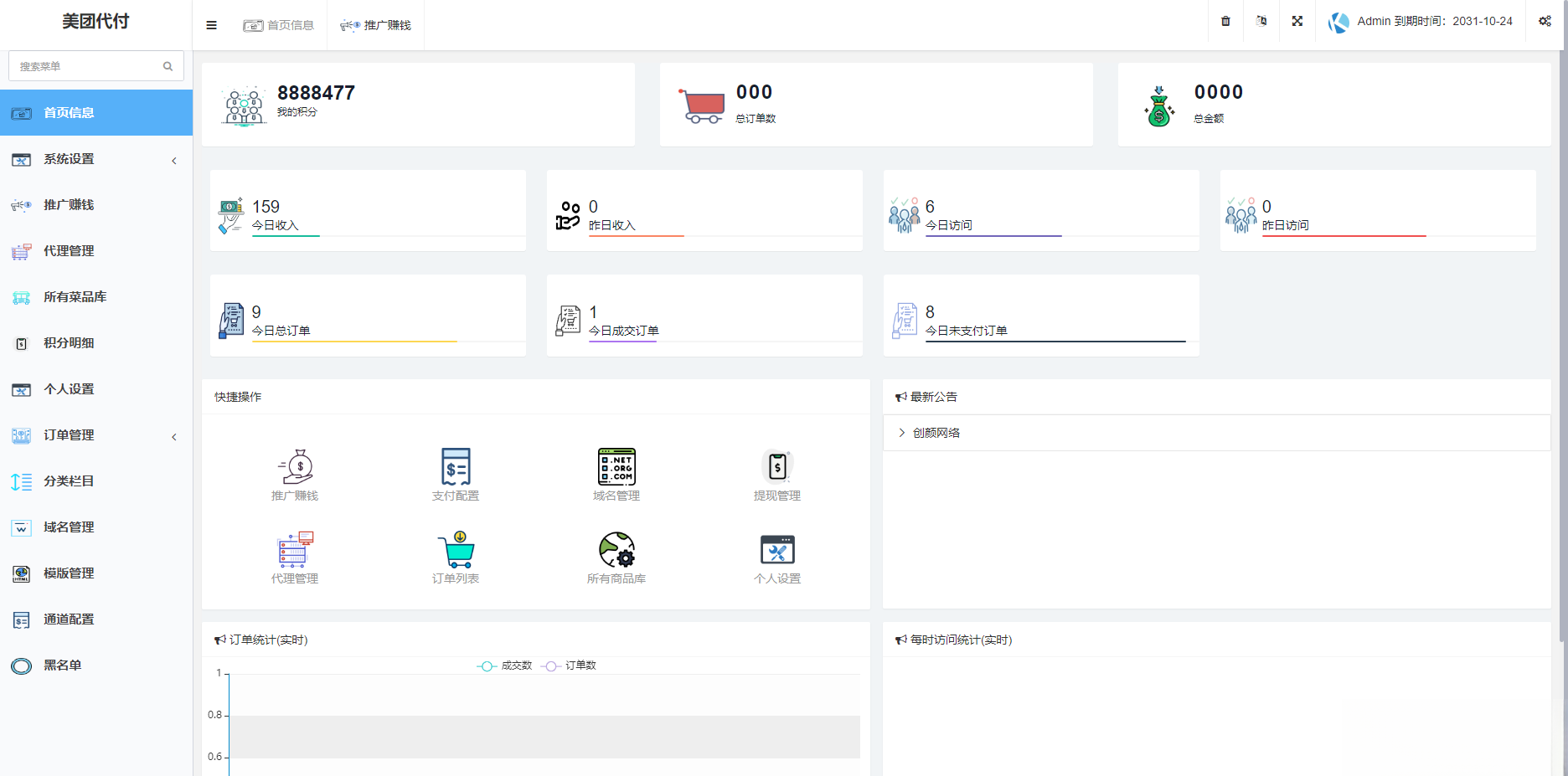 有代理功能,每个代理支持单独设置支付接口,支持对接易支付和官方支付,模板文件没加密,有能力的可以二开 UI